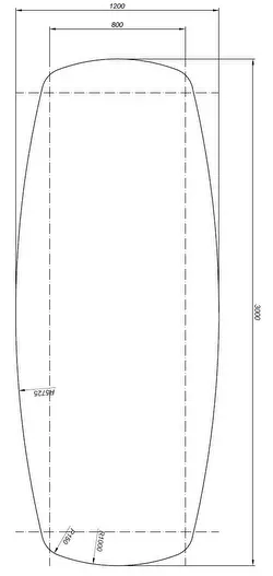 De breedte van de kopkant is 200mm smaller dan het midden. Dus als het blad in het midden 1000mm breed is, dan is het blad aan de kopkant 800mm breed. De kopkant is rechtlijnig.